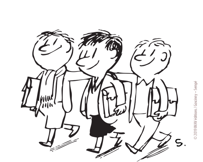 Mèche au vent, sourire aux lèvres et cartable à la main, en quelques traits, Sempé campe le héros immédiatement identifiable. Goscinny écrit intégralement toutes les histoires que Sempé illustre d’un, deux, trois ou quatre dessins au grès de son inspiration. Avec 15 millions d’exemplaires vendus pour l’ensemble des titres, traduits dans 45 pays, le Petit Nicolas est un héros international. © 2019 IMAV éditions / Goscinny – Sempé