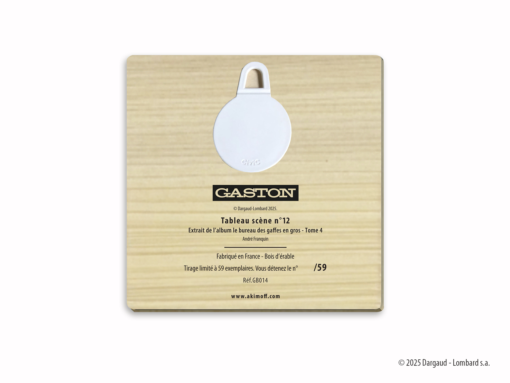 Les illustrations sélectionnées de Gaston sont imprimées avec minutie sur du bois d'érable. Cette impression de grande qualité reproduit avec fidélité les couleurs originales tout en laissant apparaître les veines du bois. Ce produit est fabriqué artisanalement en France.